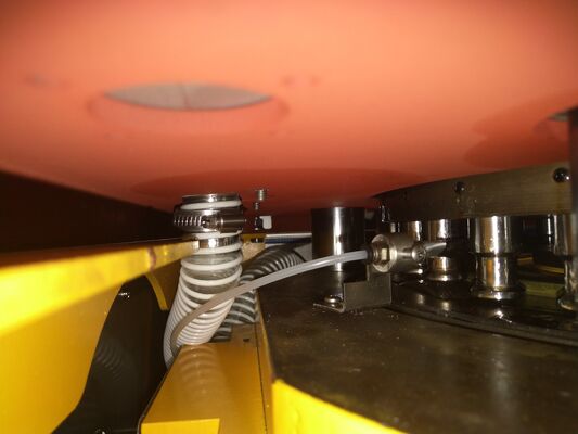 7. Yang pertama dari jenisnya yang menggunakan peralatan pelumas semi-otomatis dan penutup anti-debu kaca plexiglass di bagian atas meja putar.