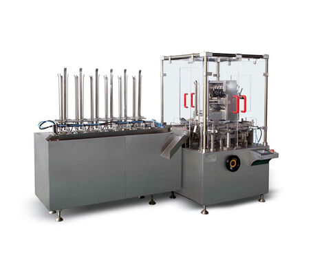 Mesin ini cocok untuk memberi makan dan mengemas barang berbentuk botol secara otomatis. Seluruh proses penyortiran dan pengangkutan botol otomatis online, pelipatan manual (1-4 kali pelipatan) dan pengangkutan, deteksi manual, menggambar karton dan membentuk dan menyampaikan, memasukkan bahan karton, nomor batch stempel, kemasan lidah kertas di kedua ujung karton (juga berlaku untuk perekat lelehan panas), eliminasi bahan yang hilang, dan keluaran produk jadi semuanya diselesaikan secara otomatis.